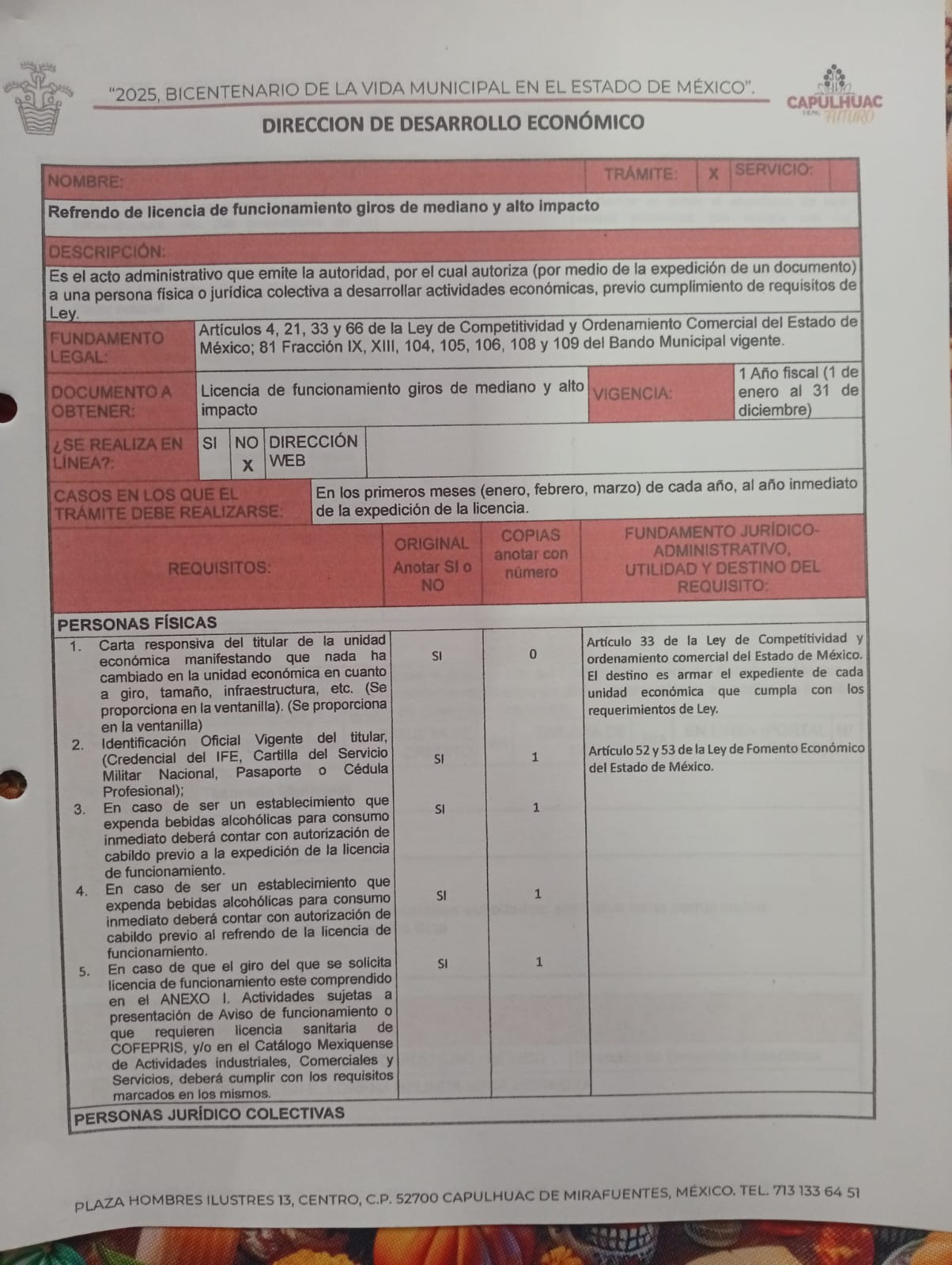 - REFRENDO DE LICENCIA DE FUNCIONAMIENTO GIROS DE MEDIANO Y ALTO IMPACTO